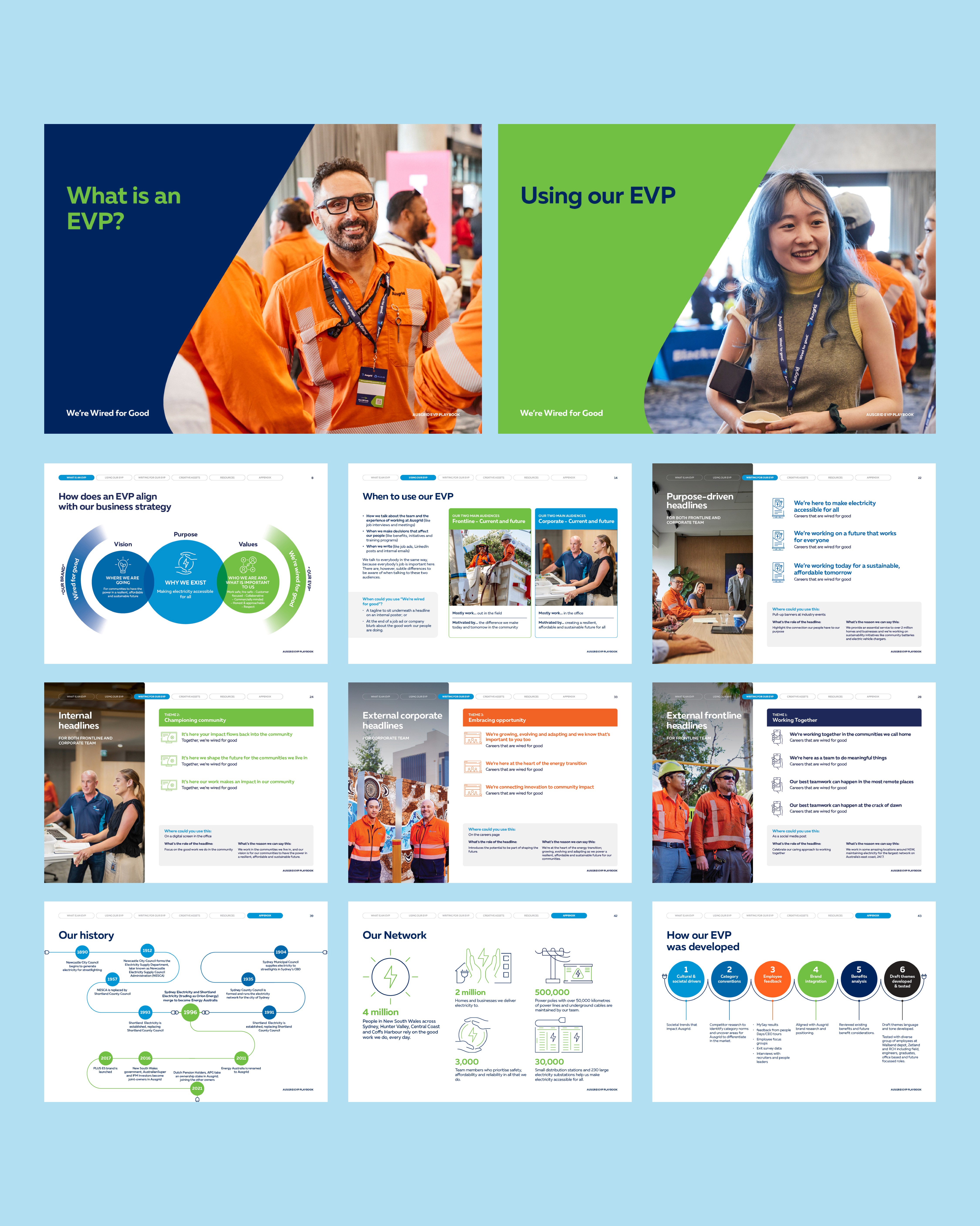 Together with Ausgrid, we helped internal teams shape a succinct EVP playbook that engages new prospects, empowers employees, and supports retention. We produced a purpose video that honours Ausgrid’s history and shows why the organisation serves its region, reinforcing its role in everyday life. We structured an on-brand, visually engaging community engagement framework that gives teams clear steps and templates, making outreach simple and consistent while building public confidence. We also created a new headquarters launch video that communicates a sustainable, people-first workplace and a long-term vision for careers. The result is a practical communication system that fills resource gaps, reduces complexity, and lets every team deliver engaging, on-brand messages across channels with confidence.