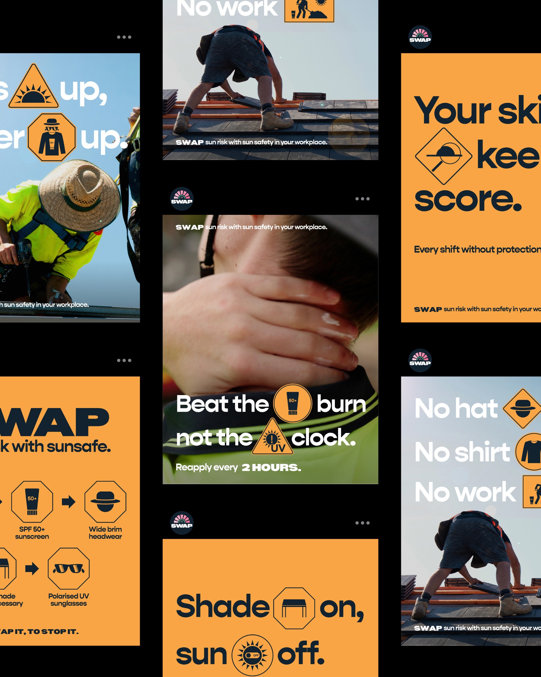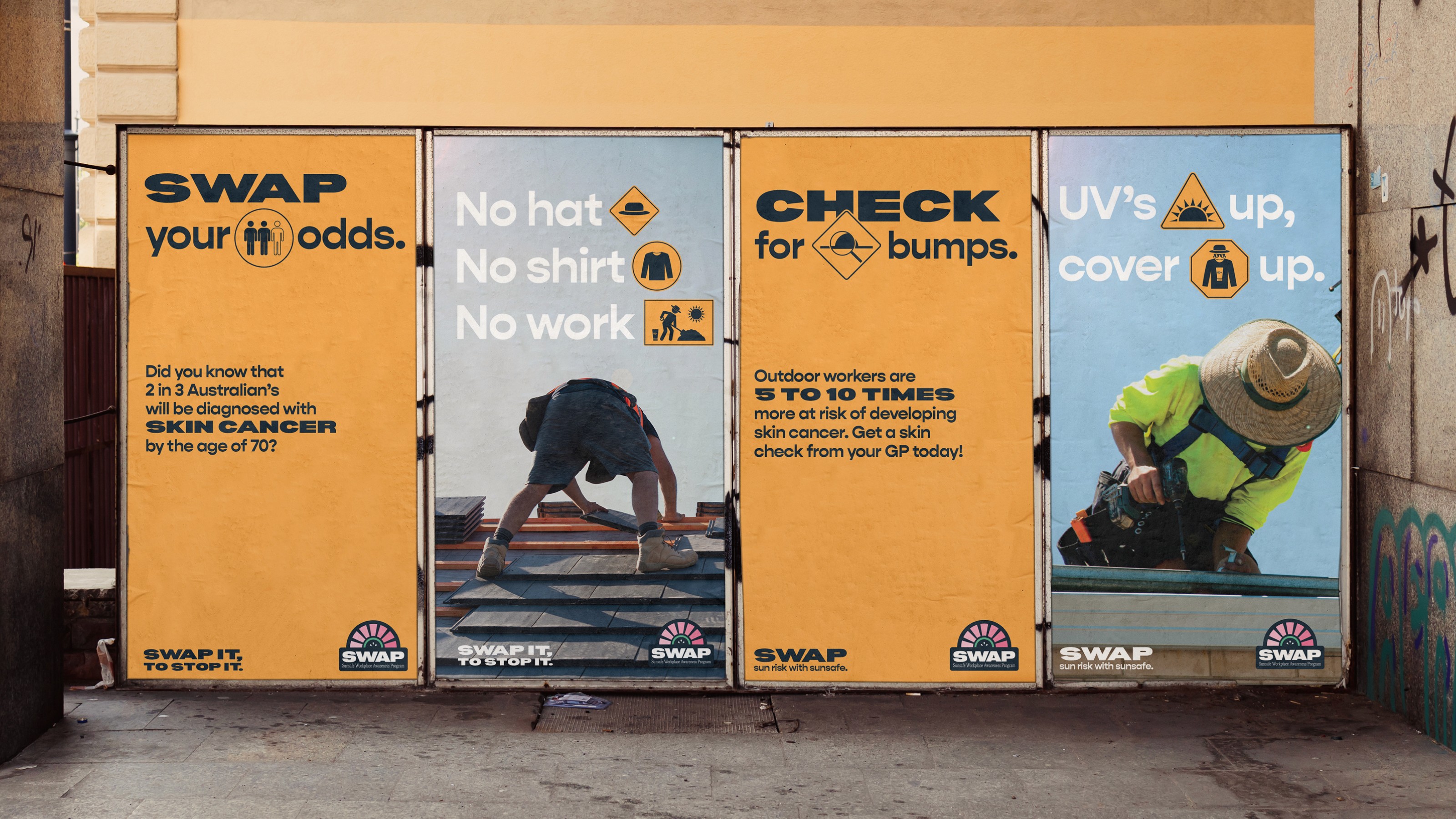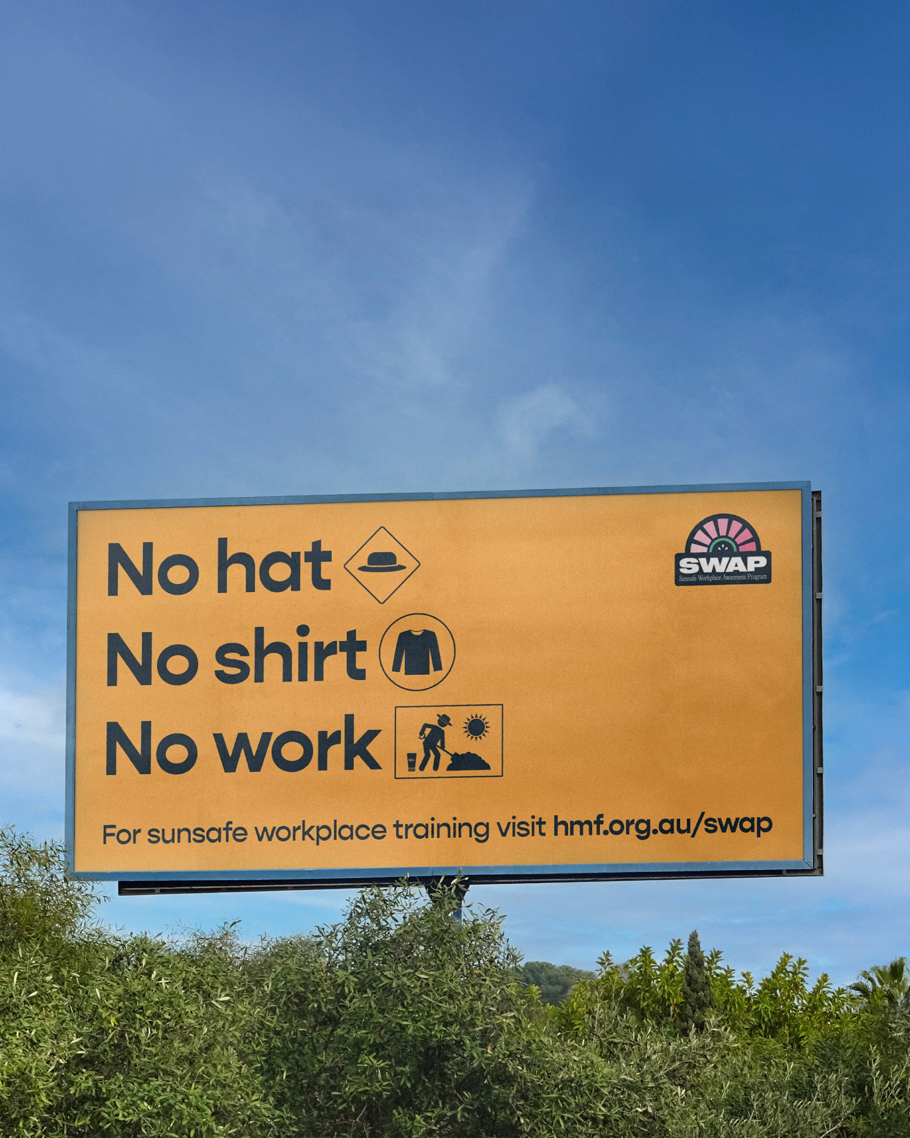 SWAP it, to STOP it gives the Hunter Melanoma Foundation a campaign platform that speaks to outdoor workers in a visual language they already trust, signage, making sun safety as instinctive as reading the road.